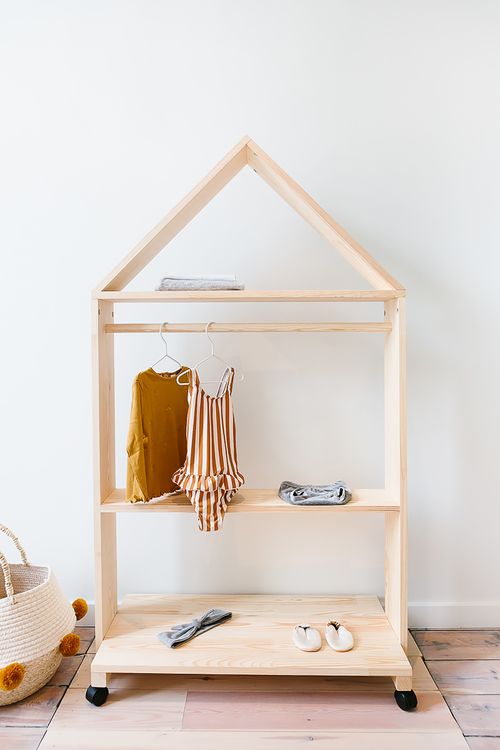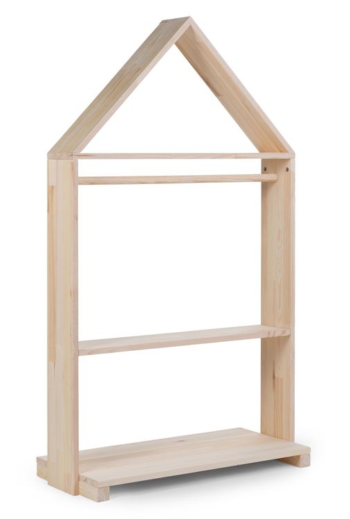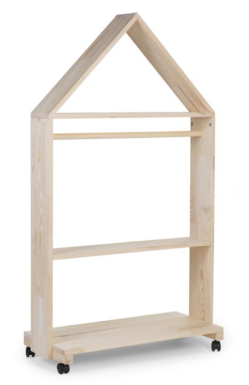 En praktisk och fin kla?dha?ngare i form av ett litet hus. Ha?ng dagens outfit till ditt barn eller varför inte förvara favoritgosedjuret på en hylla?Med sina tre praktiska hyllor a?r den perfekt även fo?r att fo?rvara skor eller mindre prylar/leksakerMått: 80 x 35 x 136 cmDesigner: Childhome