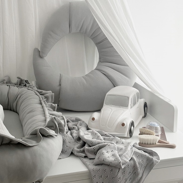 Ljusgrå amningskudde i form av en croissant från Cotton & Sweets!