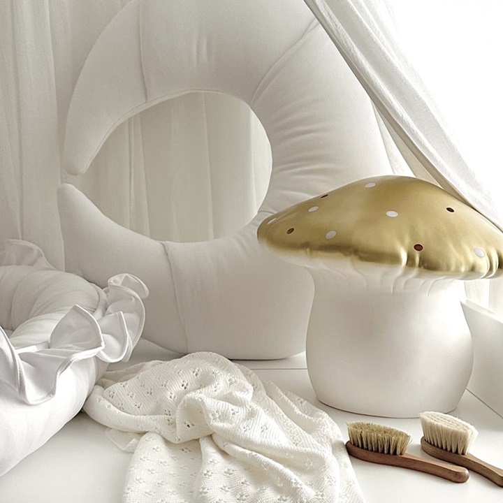 Vit amningskudde i form av en croissant från Cotton & Sweets!Denna amningskudde erbjuder inte bara komfort för såväl modern som det lilla barnet, utan är även ett bra hjälpmedel som underlättar amningen. Kan även användas som ett sittstöd till barnet när det blir lite större. Dessutom är kudden en mycket vacker inredningsdetalj. Mått: Bredd 60 cm. Höjd 55 cm. Djup 15…