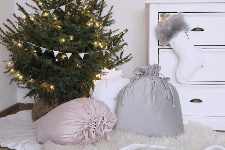 Cotton & Sweets, Julklappsäck grå En vacker och exklusiv julklappssäck att lägga sina fina julklappar i. Såväl praktisk som att den skapar den där rätta julkänslan när man ställer den bredvid granen. kombinera gärna med julstrumpor i samma serie och färg. En julklappssäck att använda för generationer, tidlös och elegant.Mått: 54×63 cm (24 l) Designer: Cotton & Sweets