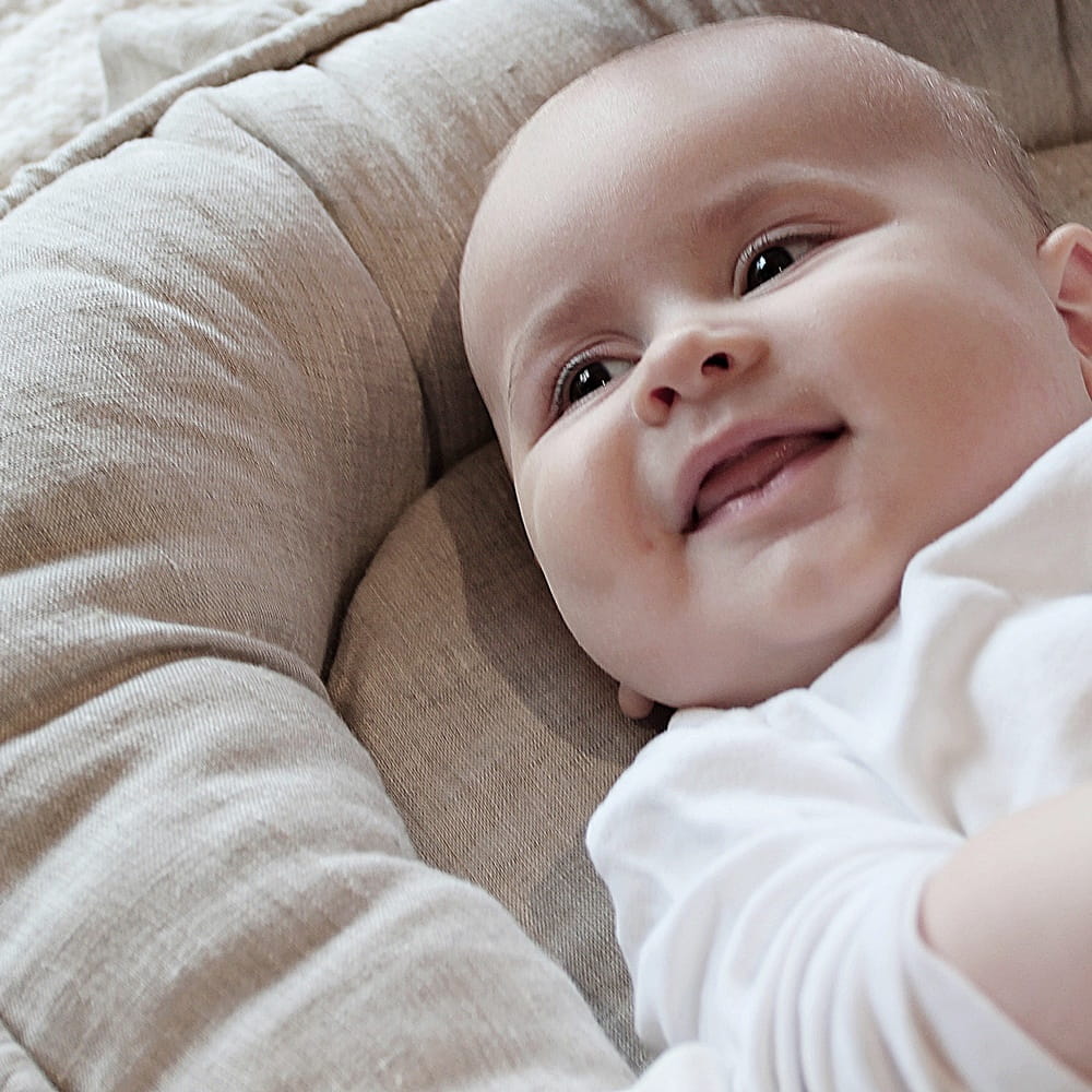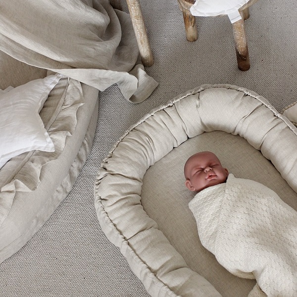 Det bästa av två världar. Cotton & Sweets och babynest av linne! Detta underbart fina babynest kommer inte bara vara en säker och mysig plats för ditt lilla barn, utan även förgylla ditt rum med någonting riktigt vackert. Ett babynest är kanske det mest praktiska barntillbehöret som gör att ditt barn kan sova tryggt, var det en befinner sig. Du kan enkelt flytta runt den mellan olika rum, eller ta med dem när ni ska bort eller ut och resa. Barnet sover även tryggare om de ligger i föräldrarnas säng, eller i den egna spjälsängen/vaggan. Matchas självklart med Cotton & Sweets övriga produkter som går i samma stil.