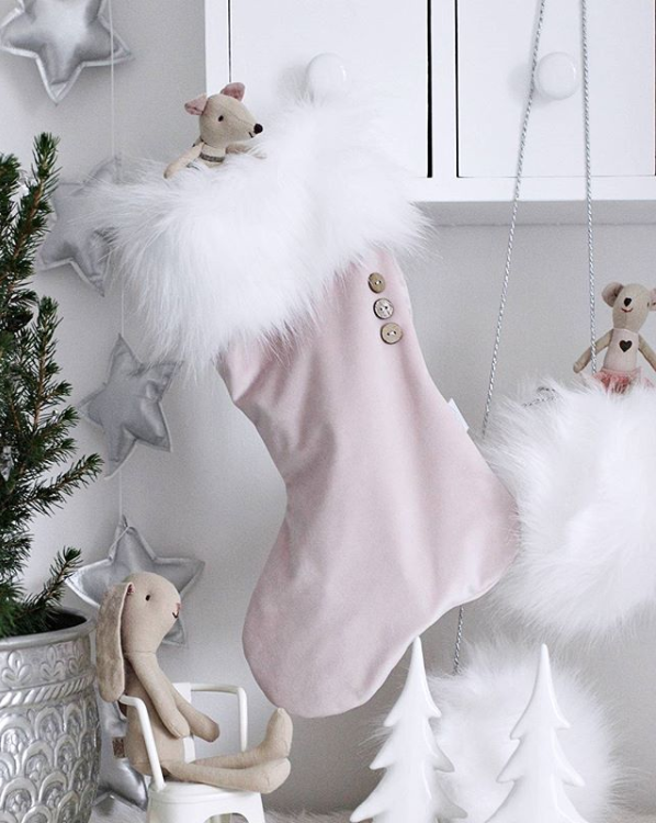 En söt och fin julstrumpa från det populära företaget Cotton & Sweets. Denna julstrumpa är gjord av velourtyg och är både fluffig och skön, samtidigt som den är vacker att hänga upp i barnrummet. Julstrumpan kommer förberedd med en hängare som gör det enkelt för dig att placera den i rummet. Relativt stor vilket gör att man kan stoppa ner fina julklappar i den.