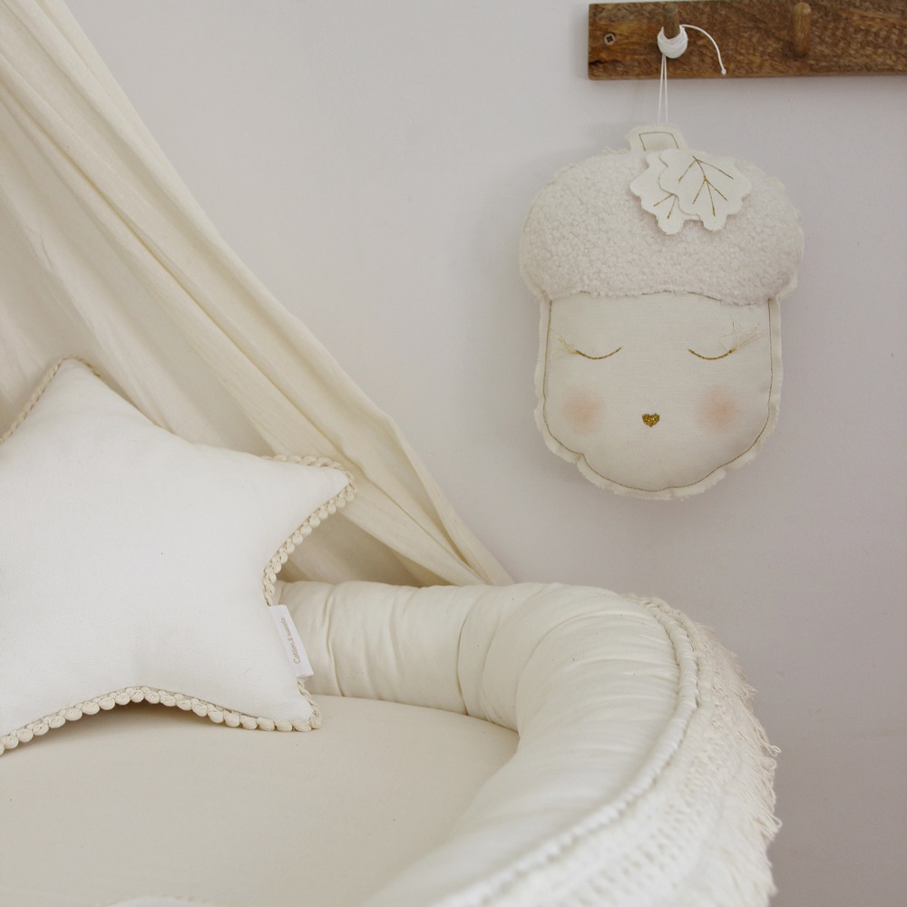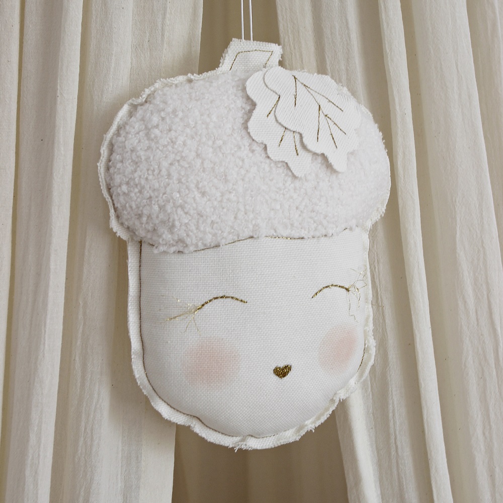 Alla barn älskar denna vackra och dekorativa dubbelsidiga mobil i form av ett urgulligt ekollon. Charmig i sin enkelhet och idealisk för barnrumsinredningen.