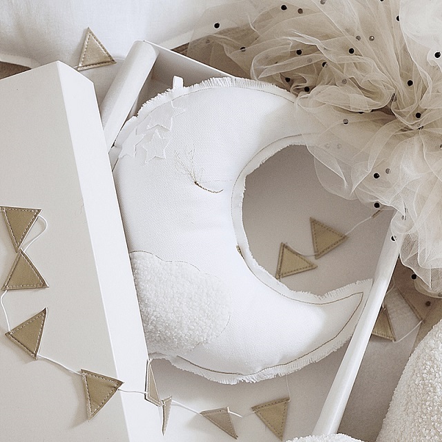 En fantastisk fin detalj för barnrummet, sydd av mjuk bomull och teddytyg. Charmig i sin enkelhet och idealisk för barnrumsinredningen. Häng den ovanför sängen eller på väggen för att skapa en drömvärld i ditt barns rum. Finns även i färgerna natur, grå, puderrosa och vanilj.Mått : Bredd 31 cm, djup 10 cm och höjd 31 cm. Material:  Tyg: 69% bomull, 31%…