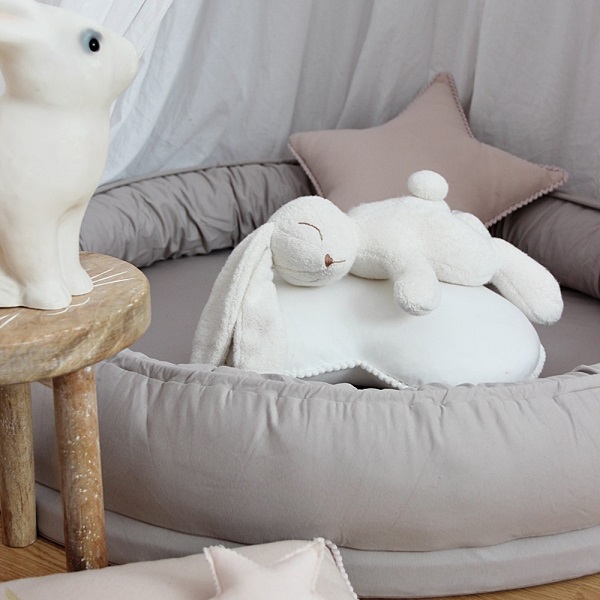 Babynest modell större = Juniornest! När barnet blivit lite större är detta juniornest en ypperlig produkt för att bevara den underbara känslan från ett babynest.Från populära Cotton & Sweets så kommer denna att fungera perfekt som en lekmatta, myspöl eller under sänghimmeln. Den kommer att smälta in alldeles underbart i övrig barnrumsinredning och skapa en härlig känsla i barnrummet. Gjord…