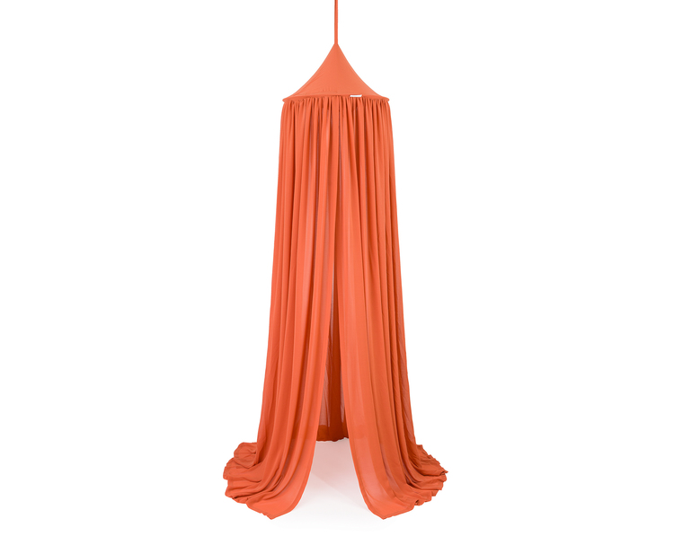 En mycket charmig och vacker bränd röd sänghimmel tillverkad av högkvalitativt material som är lite ”genomskinligt”. Designad i en enkel form och i en typisk skandinavisk stil. I varje rum som denna används kommer en sagokänsla att spridas. Perfekt för att inreda barnrummet på ett bra sätt. Sänghimmeln är dessutom förberedd med en praktisk anordning i mitten för att kunna hänga favoritsakerna.