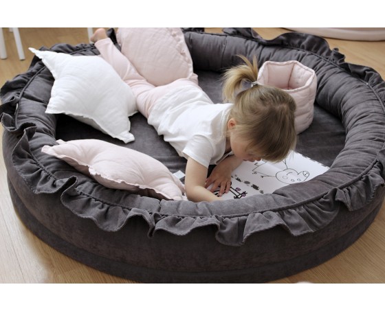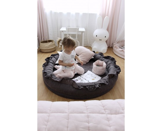 Babynest modell större = Juniornest! När barnet blivit lite större är detta juniornest en ypperlig produkt för att bevara den underbara känslan från ett babynest.Från populära Cotton & Sweets så kommer denna att fungera perfekt som en lekmatta eller under sänghimmeln. Den kommer att smälta in alldeles underbart i övrig barnrumsinredning och skapa en härlig känsla i barnrummet. Gjord av 95 % mjuk…
