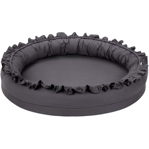 - Stor – Diameter: 110 cm (+/-). Höjd: 18 cm (+/-). Madrasshöjd: 4 cm.