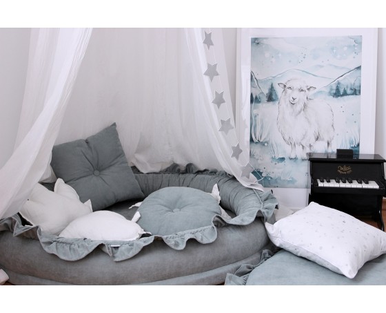 Från populära Cotton & Sweets så kommer denna att fungera perfekt som en lekmatta eller under sänghimmeln. Den kommer att smälta in alldeles underbart i övrig barnrumsinredning och skapa en härlig känsla i barnrummet. Gjord av 100 % mjuk polyestertyg med en fyllning av polyesterbollar. Madrassen är gjord av 100 % OEKO-TEX skummgummi, som även används för att göra bäddmadrasser till spädbarn.