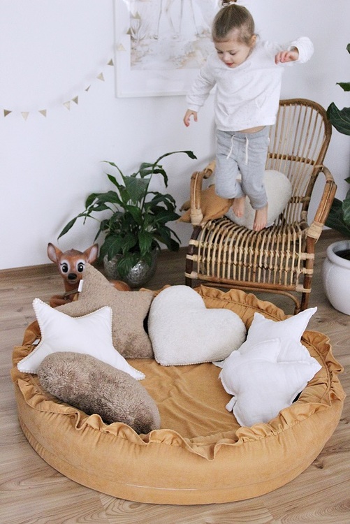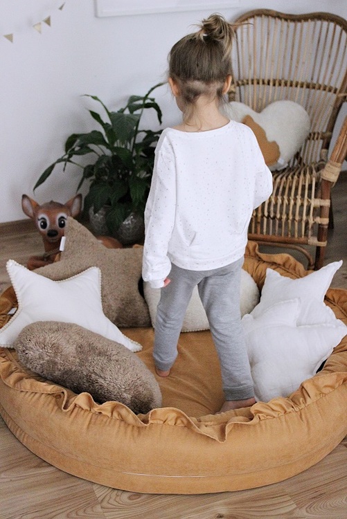 Från populära Cotton & Sweets så kommer denna att fungera perfekt som en lekmatta eller under sänghimmeln. Den kommer att smälta in alldeles underbart i övrig barnrumsinredning och skapa en härlig känsla i barnrummet. Gjord av 100 % mjuk polyestertyg med en fyllning av polyesterbollar. Madrassen är gjord av 100 % OEKO-TEX skummgummi, som även används för att göra bäddmadrasser till spädbarn.