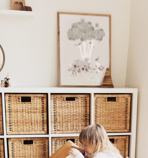 Ett set med tre underbara postrar för barnrummet med motiv av en vacker skog och söta djur. Med dessa postrar kan du enkelt skapa en unik känsla i din barnrumsinredning och ditt barn kommer att älska de sagoliknande motiven.