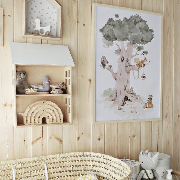 Ett set med tre underbara postrar för barnrummet med motiv av en vacker skog och söta djur. Med dessa postrar kan du enkelt skapa en unik känsla i din barnrumsinredning och ditt barn kommer att älska de sagoliknande motiven.
