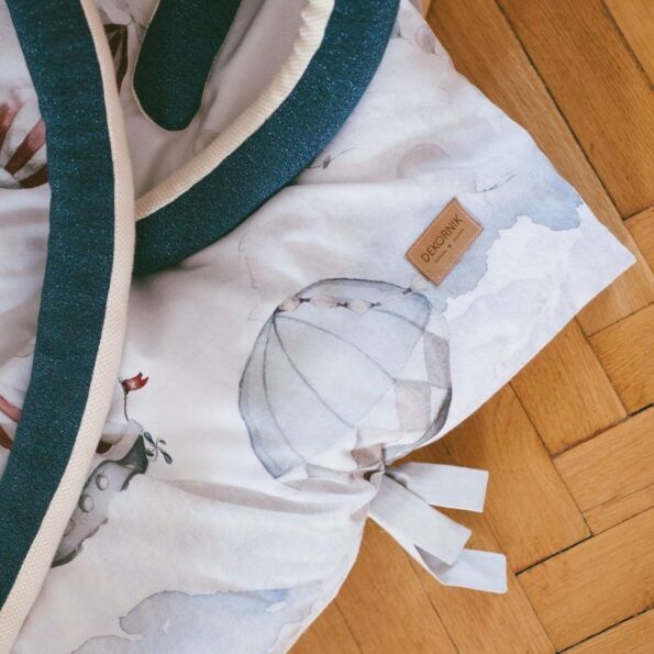 Överraskande vackra barnsängkläder av bomullssatin ger det bästa till ditt barn. Med vackra ballonger på ena sidan och grå färg på andra sidan kommer det även att passa väl in i din barnrumsinredning. Bäddsetet passar perfekt i en barnsäng av standardmått. Mått: 1x kuddfodral 40×60 cm och 1x påslakan 100x135cm. Material: 100 % OEKO-TEX certifierad bomullssatinObs. Kudde och täcke…