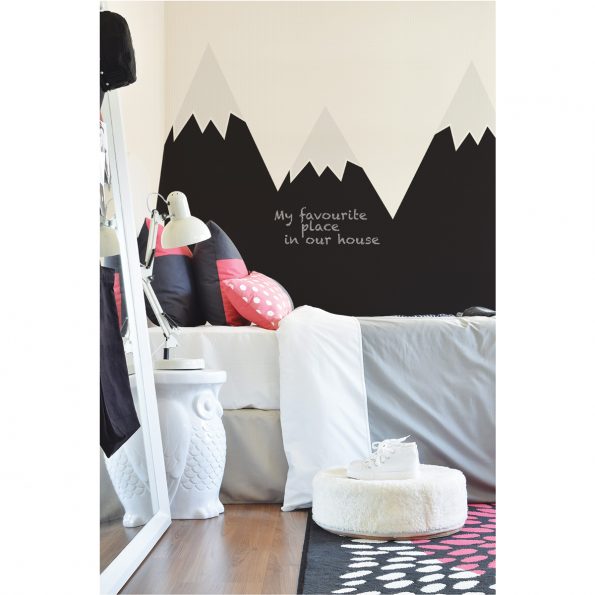 Väggdekoren funderar dessutom som en griffeltavla där barnet kan skriva eller måla något fint .