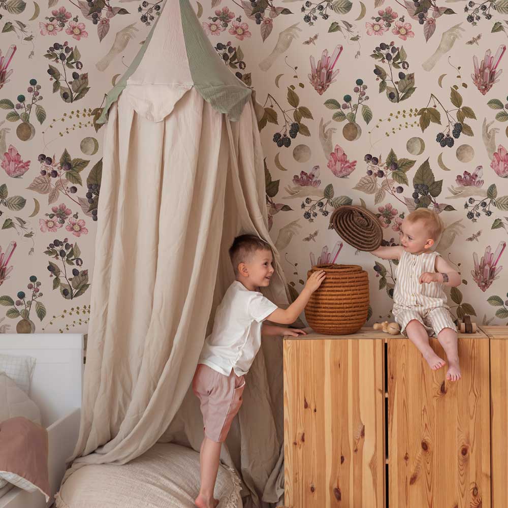 Unika och sagolika naturinspirerade tapeter  som du måttbeställer efter dina önskemål. Du kan skapa en helt egen sagovärld som ditt barn kommer att älska, och samtidigt skapa en barnrumsinredning av sällan skådat slag.