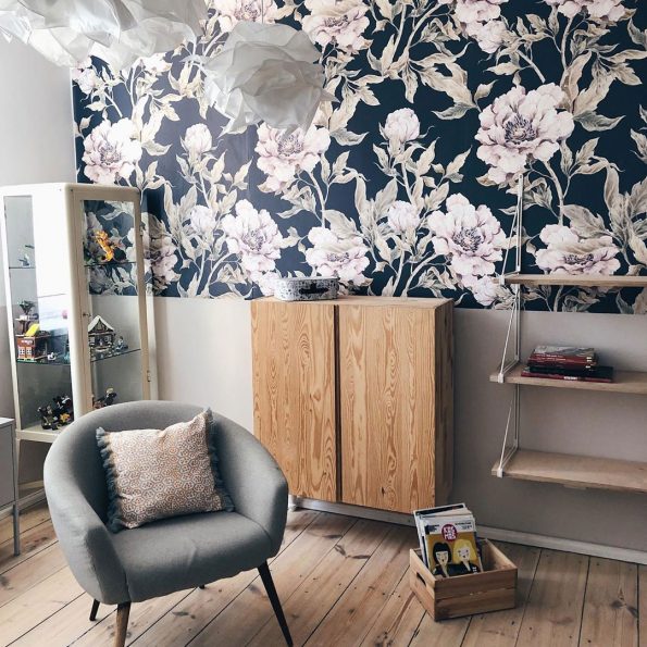 Dekornik, tapet Peonies Navy Blue