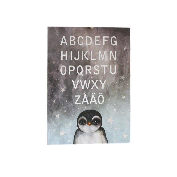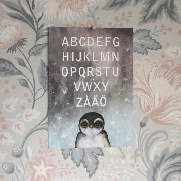 En superfin och söt poster till barnrummet som är tryckt på ett medelglansigt papper och med ett motiv av det svenska alfabetet. Ett perfekt och lekfullt sätt för ditt barn att bekanta sig med bokstäver.Posterna är designad för att passa i alla typer av barnrum och pingvinen på bilden brukar vara mycket uppskattad av barnen.Mått A3 : Ca 30 × 42 centimeterDesigner: Dessin Design