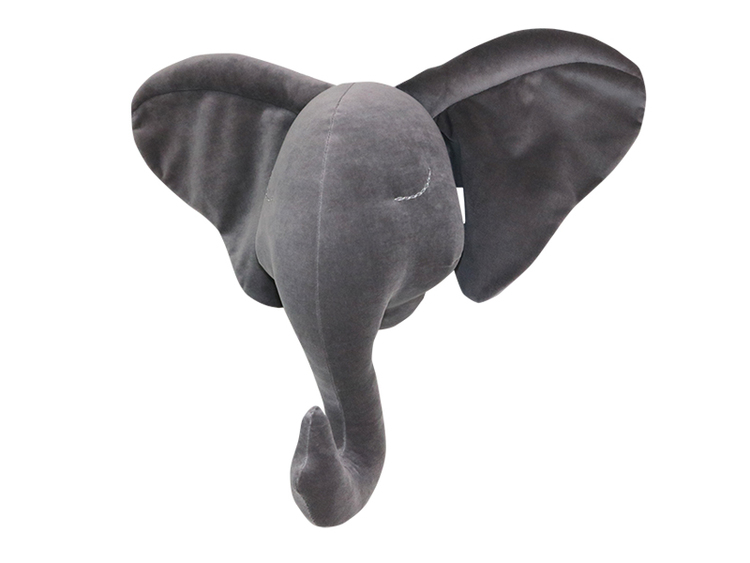 Superfin väggdekoration i form av en grå elefant gjord av mjuk och härlig bommullssammet gör att denna flodhäst är vädligt mjuk och mysig att känna på. Samtidigt som det är en fantastiskt vacker dekoration till barnrummet.