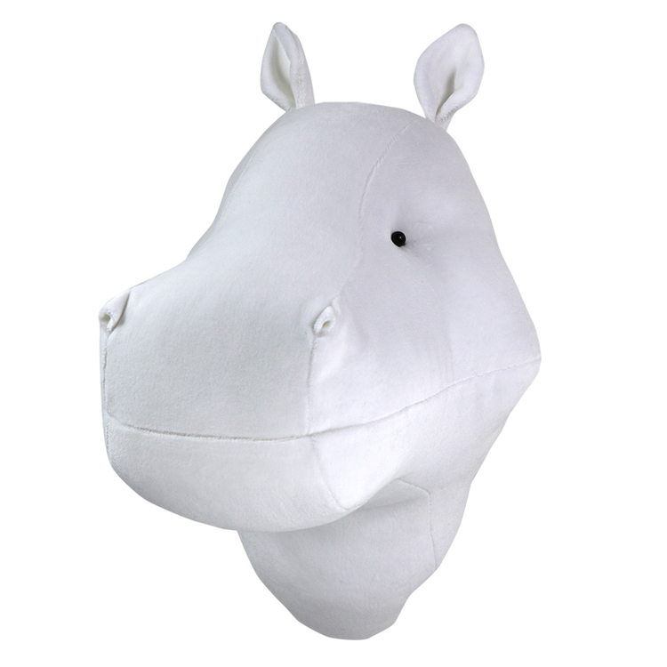 Superfin väggdekoration i form av en vit flodhäst gjord av mjuk och härlig bommullssammet gör att denna flodhäst är vädligt mjuk och mysig att känna på. Samtidigt som det är en fantastiskt vacker dekoration till barnrummet.