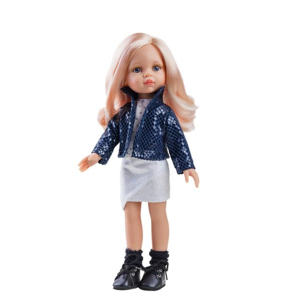 Blonda Carla kommer att bli ditt barns bästa vän. Vackert klädd i en vit kjol, t-shirt , mörk jacka och fina svarta skor