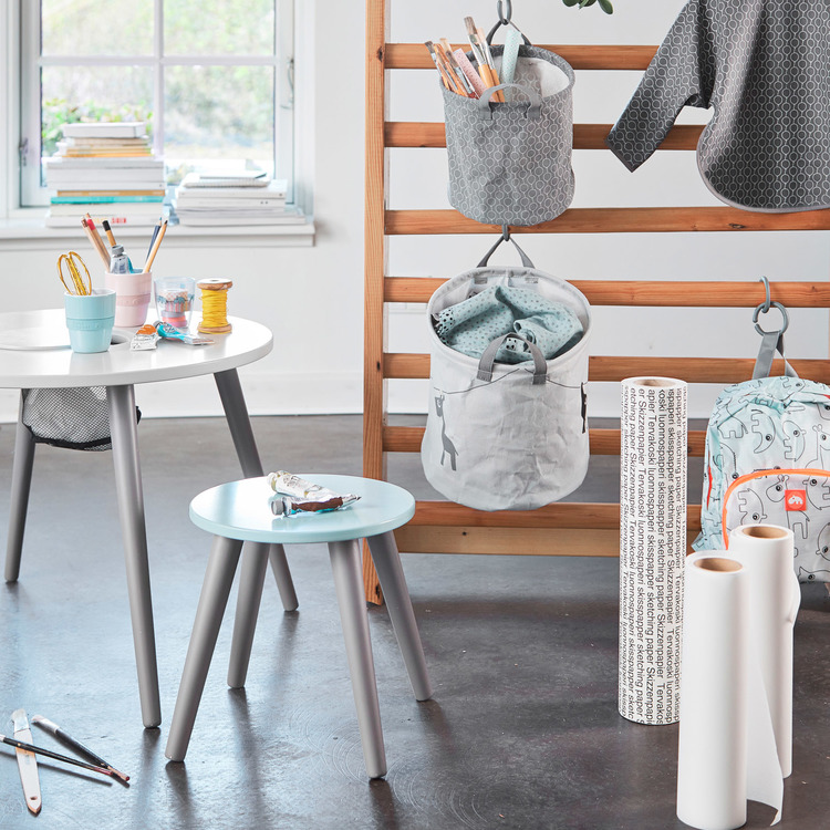 Gör ditt barnrum ännu finare med denna grå pall från danska Done by Deer. Oavsett om du väljer att matcha pallen med ett bord i samma serie så kommer du att ha mycket glädje av denna. Barn tycker om att sitta högt när de gör saker, och på denna pall ställd vid ett bord kommer barnet spendera mycket tid. Pallen är gjord av E1 graderad europeisk MDF vilket innebär att det är mycket hållbart. Du rengör den enkelt med en fuktad trasa.