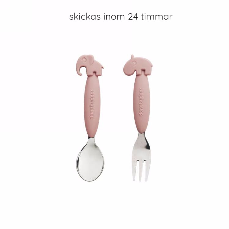 Ett mycket gulligt och praktiskt bestickset Yummy med sked och gaffel. Speciella med ett ”easy grip” av silikon för små händer med stora ambitioner.