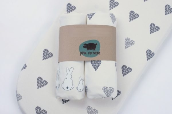 Dra-på-lakan vagn/vagga , 2-pack , Kanin & Hjärta, Pink No More