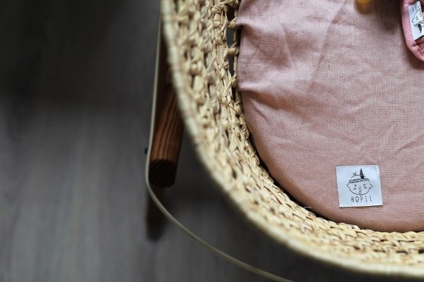 Dra-på-lakan vagn/vagga av linne, rosa