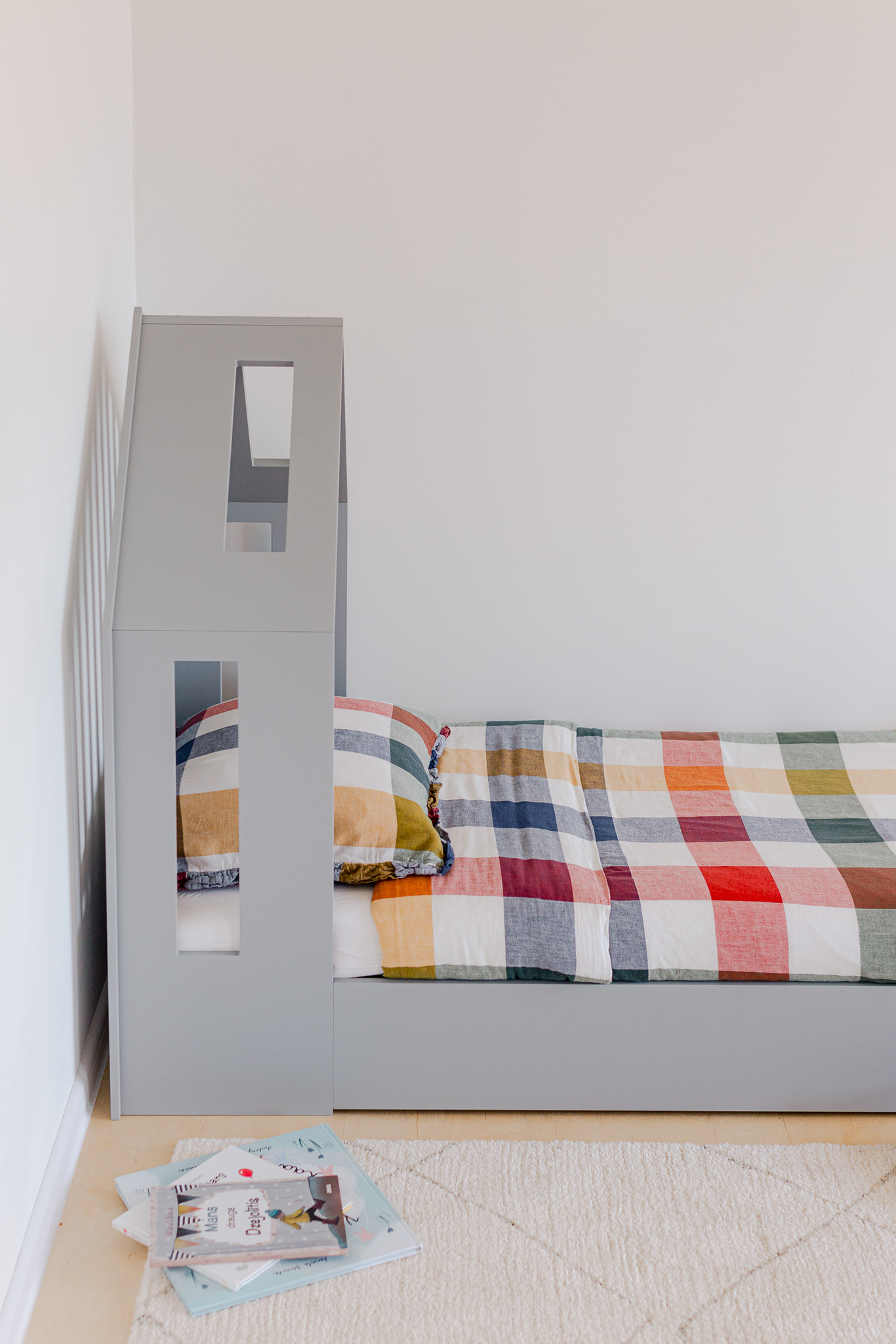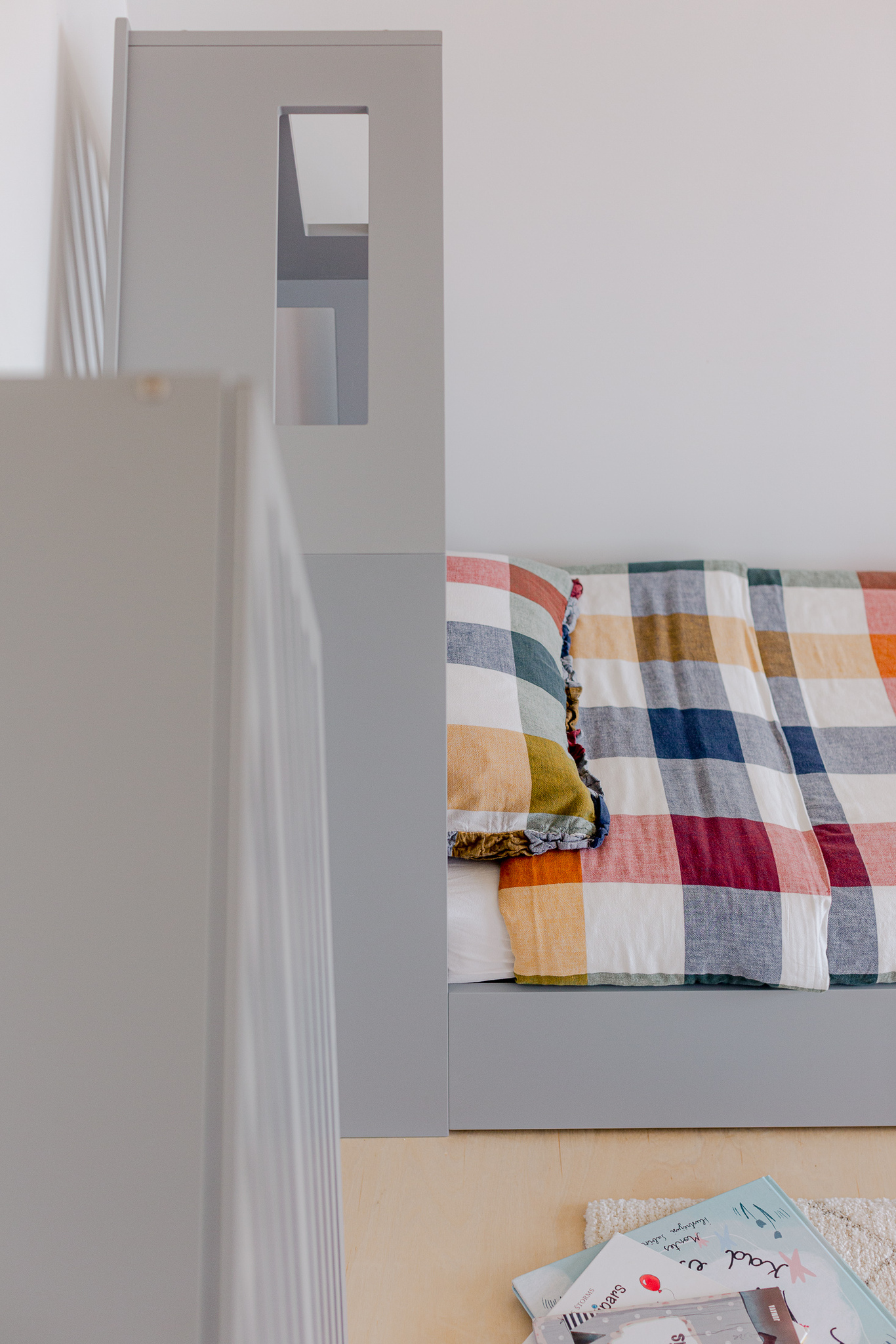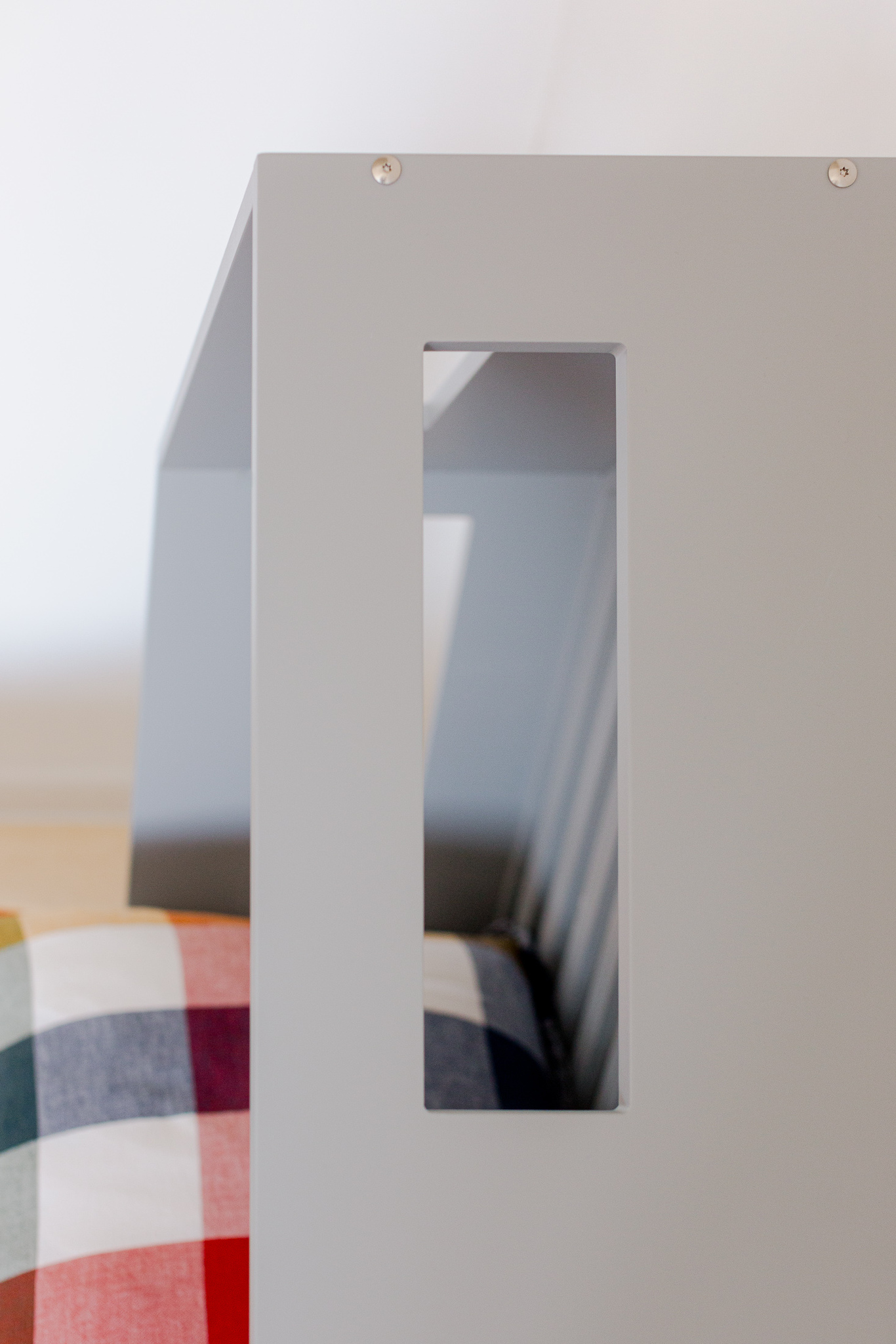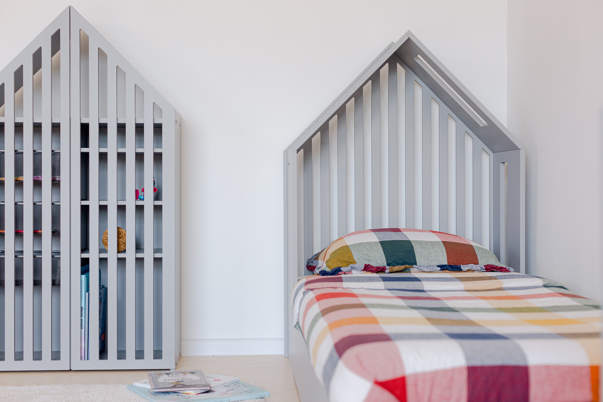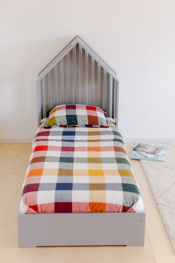 Skapa en rogivande sovmiljö med vår nya barnsäng. Sängen har en unik och charmig design med husinspirerade linjer och erbjuder en trygg och bekväm sovplats för ditt barn.