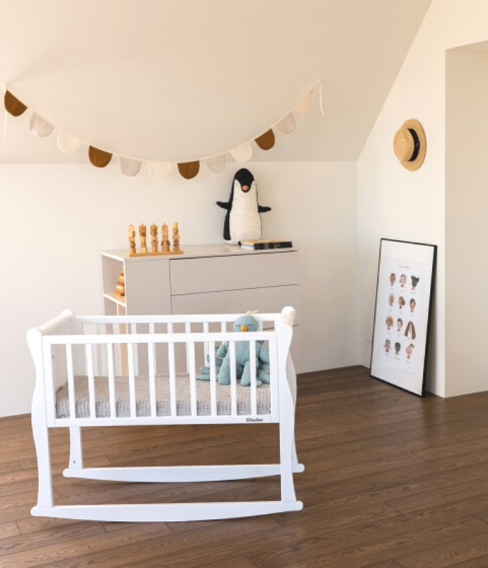 Garderoben består av en klädstång, flera hyllplan och en bottenhylla. Barnet kommer att få en känsla av att kliva in i sitt klädhus och själv välja ut dagens outfit eller varför inte använda garderoben som förvaring av ditt barns favoritleksaker?