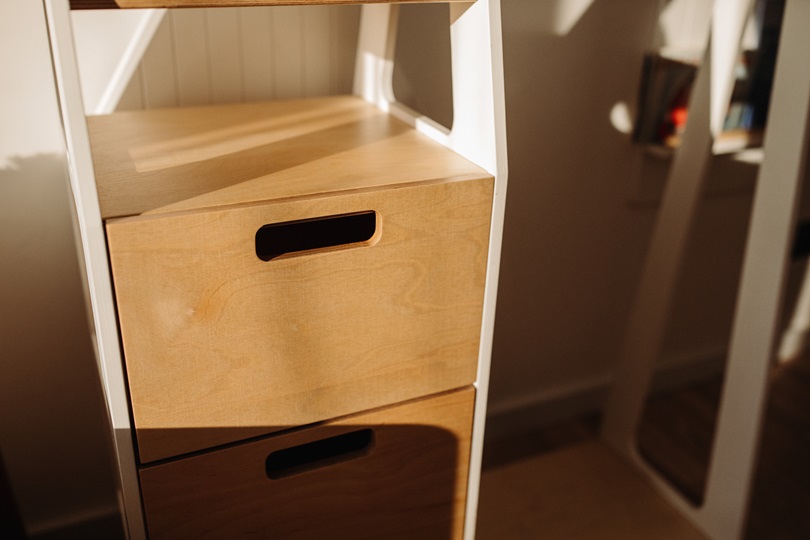 Duck Woodworks, garderob klädstång med lådor, vit/natur