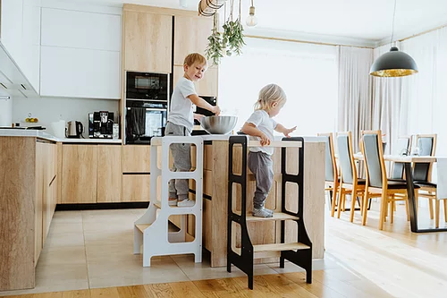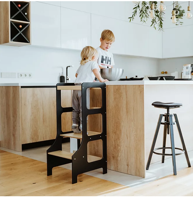Aldrig förut har det varit enklare att på ett säkert (och stilsäkert) sätt låta stjärnkockarna ta plats I köket!Hjälper till när barnet ska borsta tänderna, tvätta händerna, assistera föräldrarna vid matlagning eller annan aktivitet dit minstingen inte riktigt når upp.Pallen är enkelt att montera. Mått: 90 cm x 40 cm x 42 cm Material: PlywoodDesigner: Duck Woodworks