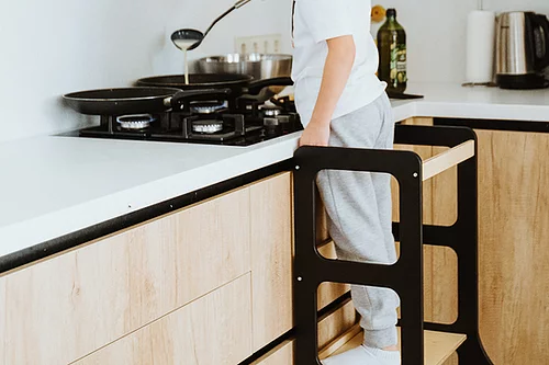 Hjälper till när barnet ska borsta tänderna, tvätta händerna, assistera föräldrarna vid matlagning eller annan aktivitet dit minstingen inte riktigt når upp.