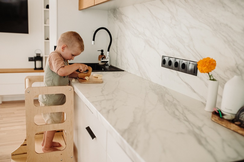 Hjälper till när barnet ska borsta tänderna, tvätta händerna, assistera föräldrarna vid matlagning eller annan aktivitet dit minstingen inte riktigt når upp.