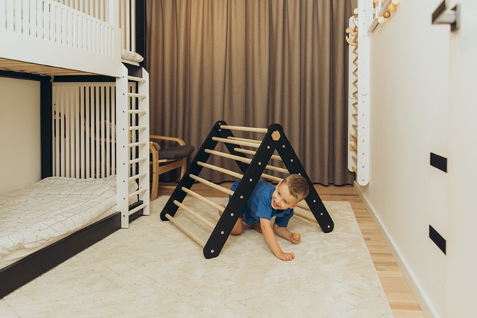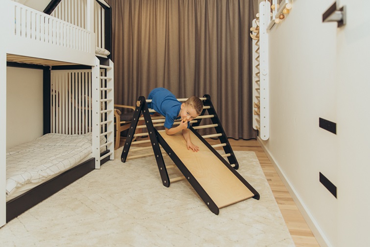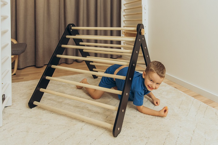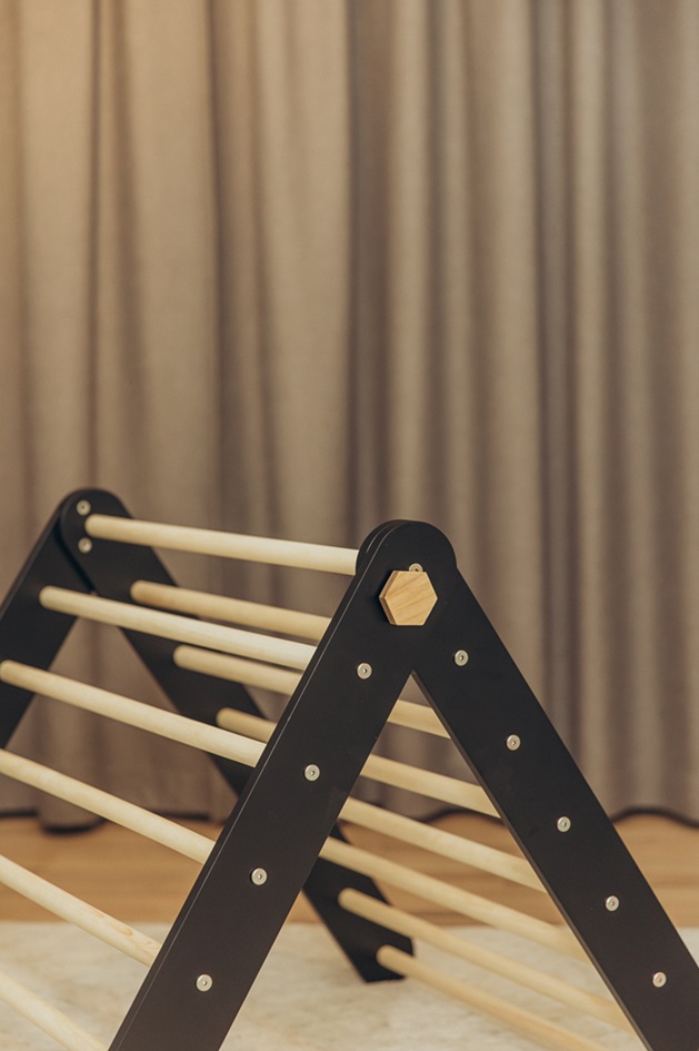 En fantastisk klättertriangel Pikler med rutschkana från Duck Woodworks!