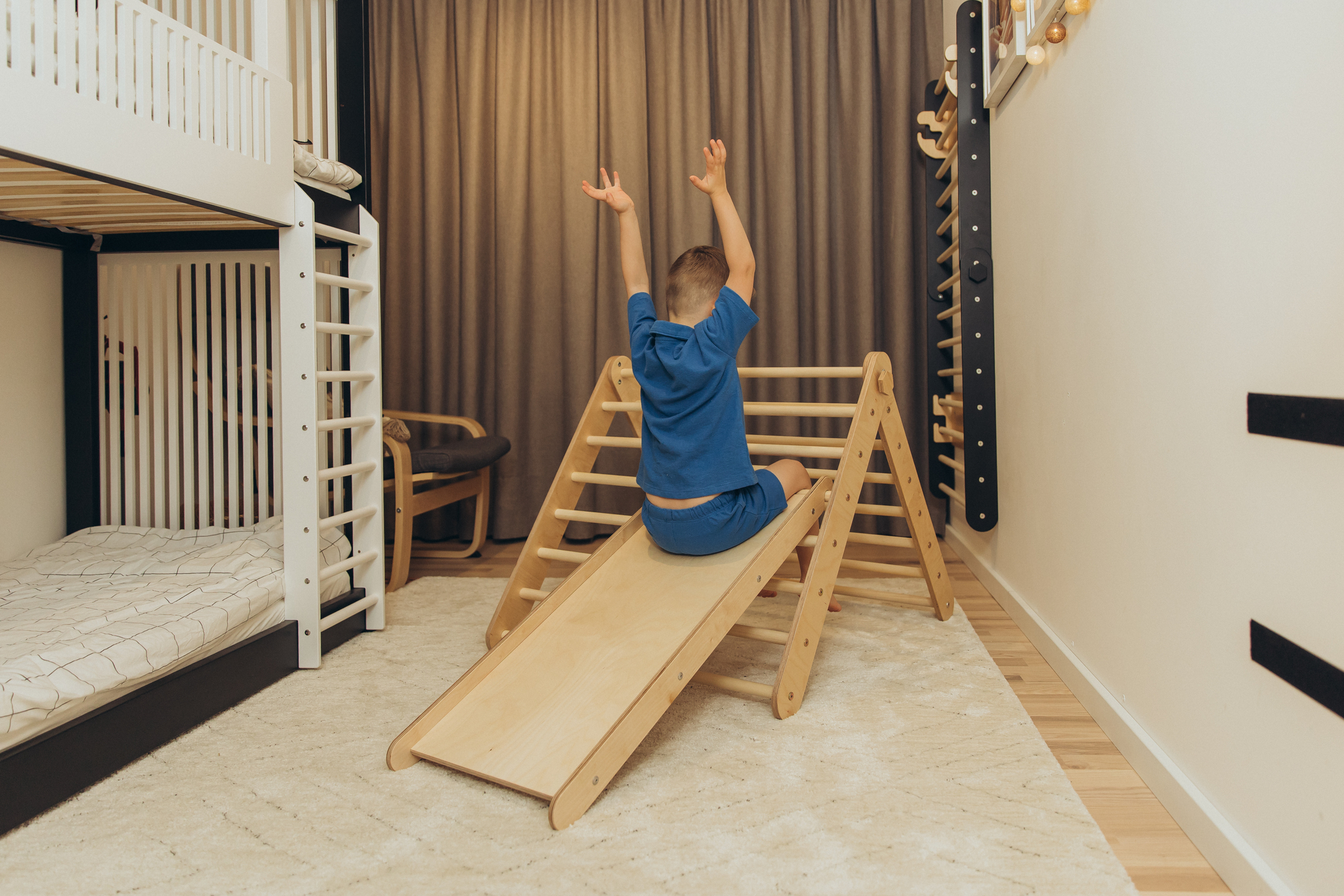 Om du bara tänker köpa en aktivitetsleksak är det denna du ska köpa! Klättringstriangeln främjar utveckling av motorik, koordination, balans och styrka genom aktiv lek. Gjord enligt Montessoripedagogik vilket motiverar barnet att på egen hand utforska och lära sig nya saker.