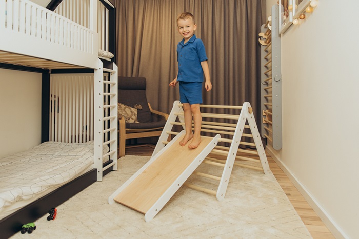 Om du bara tänker köpa en aktivitetsleksak är det denna du ska köpa! Klättringstriangeln främjar utveckling av motorik, koordination, balans och styrka genom aktiv lek. Gjord enligt Montessoripedagogik vilket motiverar barnet att på egen hand utforska och lära sig nya saker.