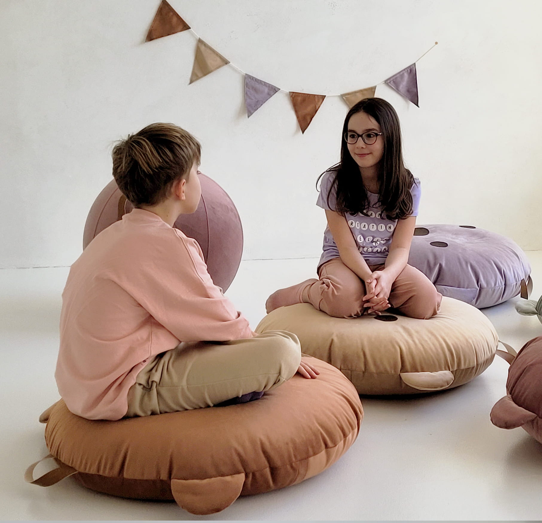 Sittpuffen passar perfekt för både små och stora barn, tack vare sin högkvalitativa fyllning som gör den mycket hållbar och säker. Fyllningen består av 100 % giftfria EPS-pärlor. Gjord av ett underbar velourtyg vilket ger en härlig känsla när du sitter i den och har dessutom ett praktiskt läderhandtag.