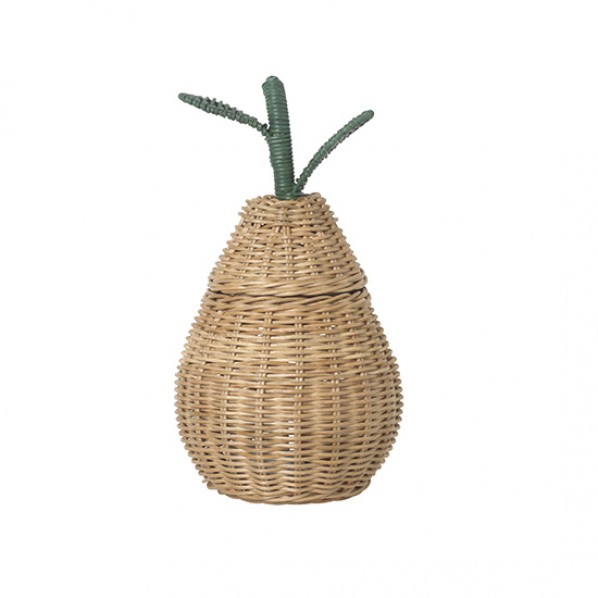 En praktisk och elegant förvaringskorg som bjuder in till lekfullhet och kreativitet i barnrummet. Gjord av rotting vilket gör den tålig och samtidigt unik. Förvara vad du vill i denna, allt från gossedjuren till favoritleksakerna. Och visst är väl formen av ett päron både kul och snyggt på samma gång? Vem sa att förvaring måste vara tråkigt? Passar i alla typer av barnrum och medvetna hem.