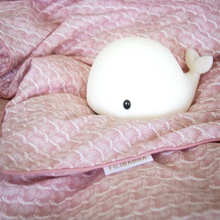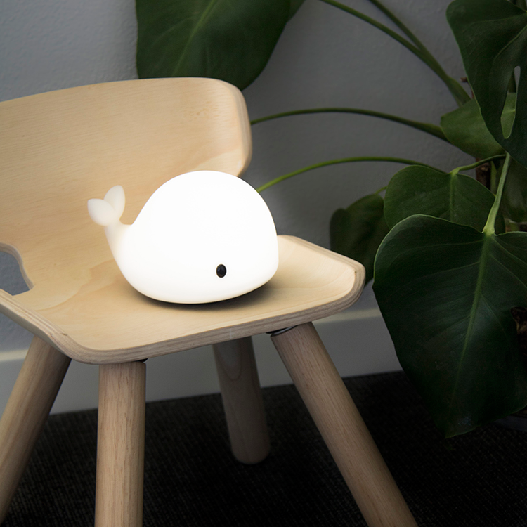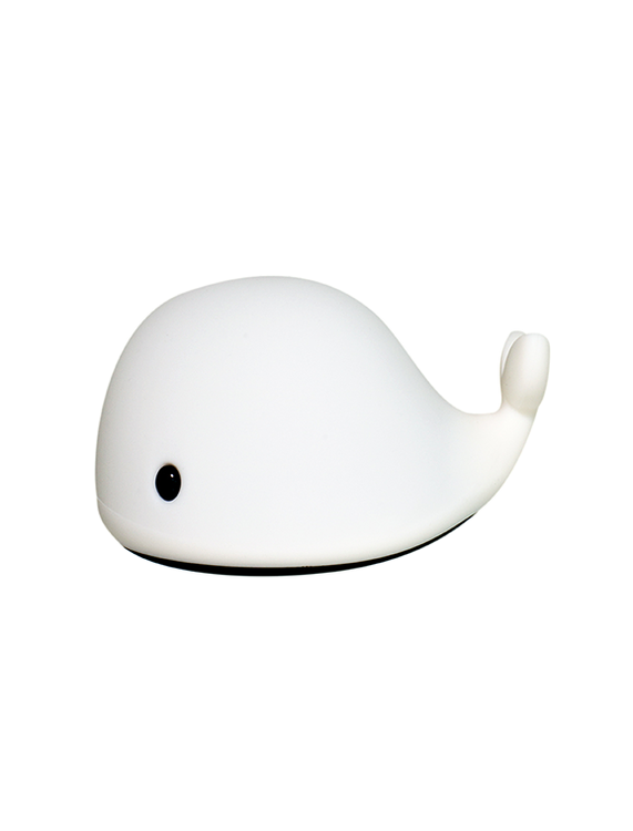 Nattlampan, som heter ”Christian the friendly whale”, innehåller led-lampor och lyser i olika färger (vit, röd, grön, blå, gul ) när barnet klappar på den. Du laddar enkelt upp den med hjälp av en medföljande USB och fulladdad lyser den i nästan åtta timmar. Denna nattlampa kommer att bli ditt barns nya favorit, det vågar vi nästan att lova.