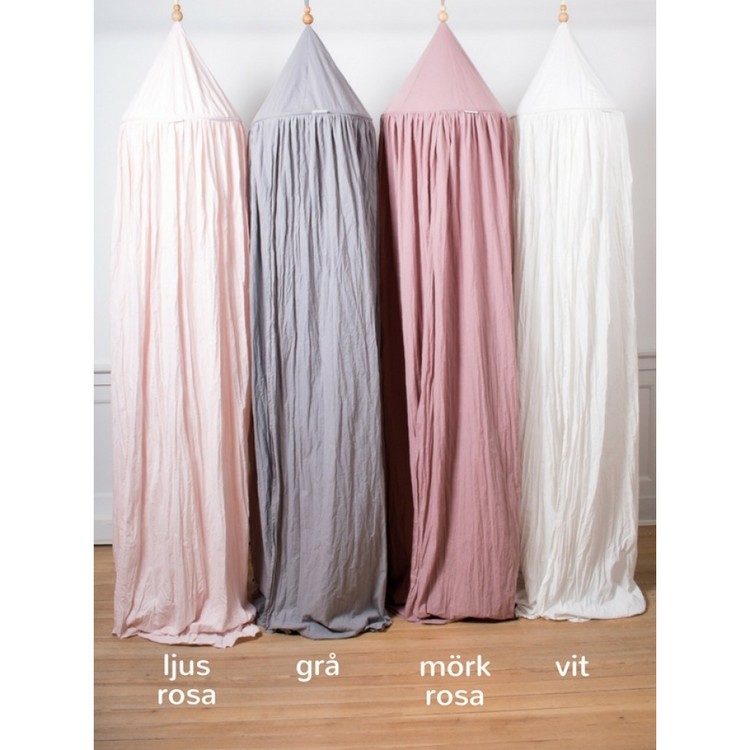 En söt och fin grå sänghimmel tillverkad av det danska företaget Filibabba. Denna sänghimmel kommer garanterat att bidra till din barnrumsinredning på ett mycket elegant sätt. Den är tillverkad helt i ekologisk bomull och kommer att ta ditt barnrum till nya nivåer. Innuti finns det en krok, som du kan hänga  upp tex en fin sängmobil på. Till alla våra sänghimlar skickar vi med en fin ljusslinga…