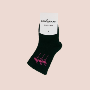 Barn strumpor i svart med rosa flamingo. Flamingo Sock är vår absoluta favorit och dessa barnstrumpor är minst lika snygga som vuxen versionen. Passar extra bra till den som vill matcha med mamma eller pappa!