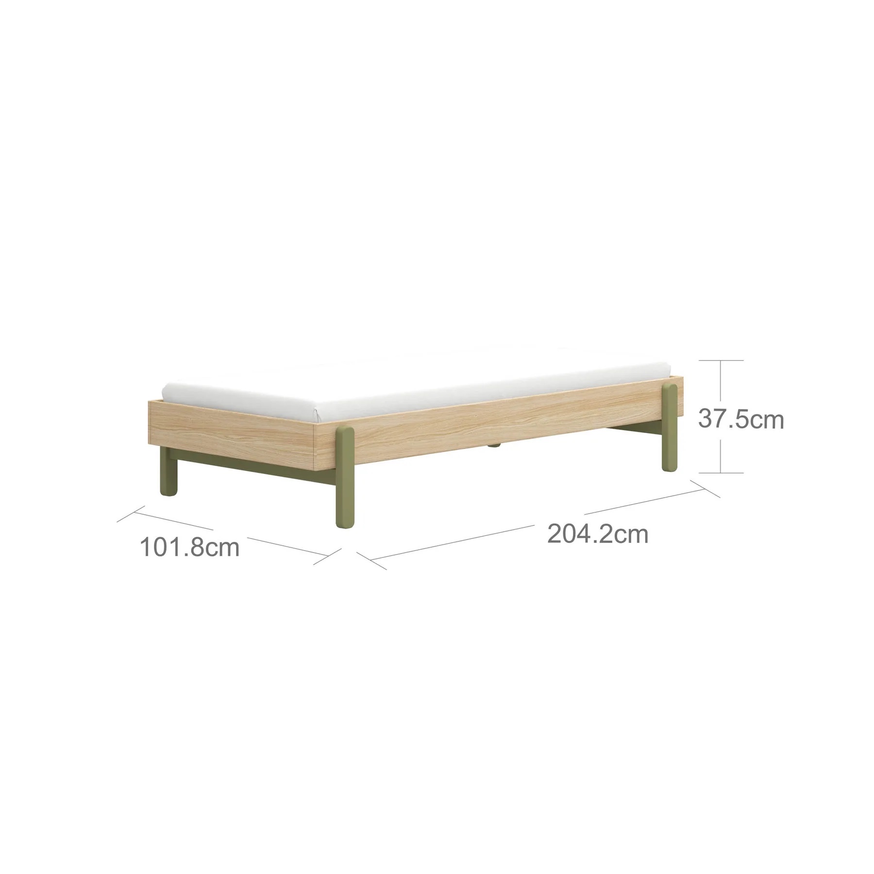 - Mått säng: Bredd: 101,8 cm. Längd: 204,2 cm. Höjd: 37,5 cm.