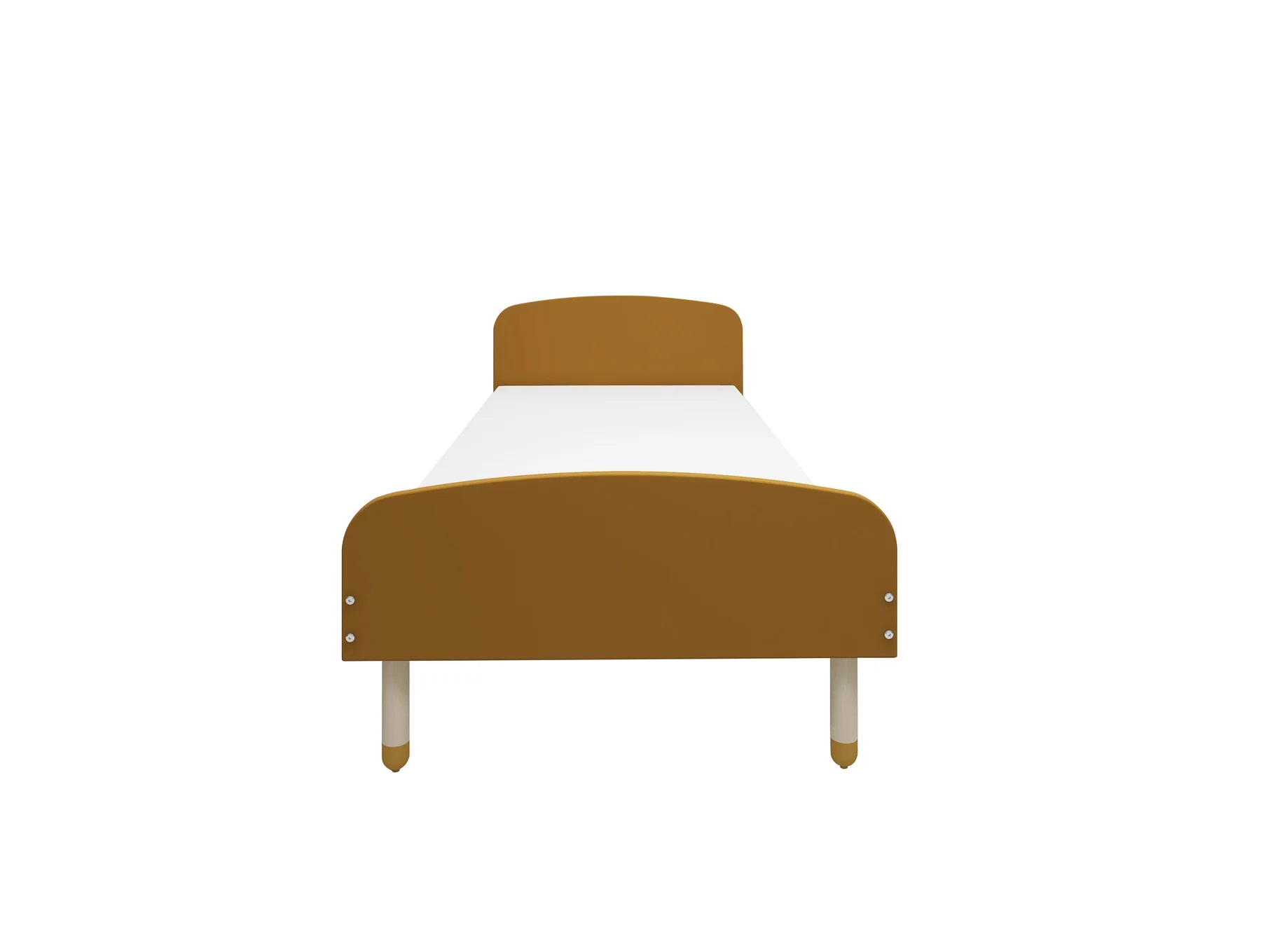 Det målade träet med de vackra benen skapar den en lyxig känsla och en tidlös design som passar i alla typer av barnrum, eller andra rum också för den delen. Samtliga kanter är rundade, för att barn inte ska göra sig illa och den är medvetet tillräckligt låg för att barnet själv ska kunna ta sig i och ur sängen.