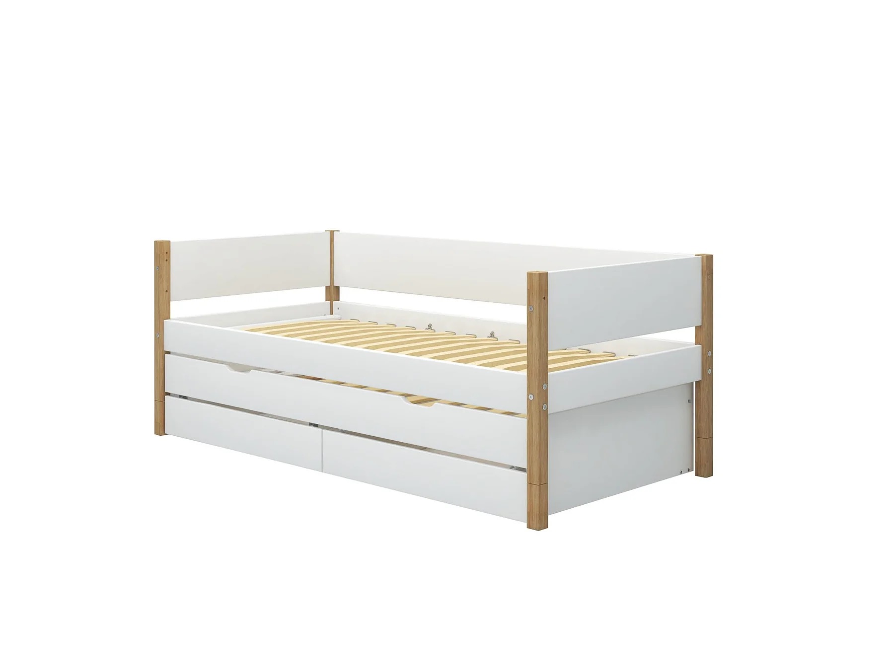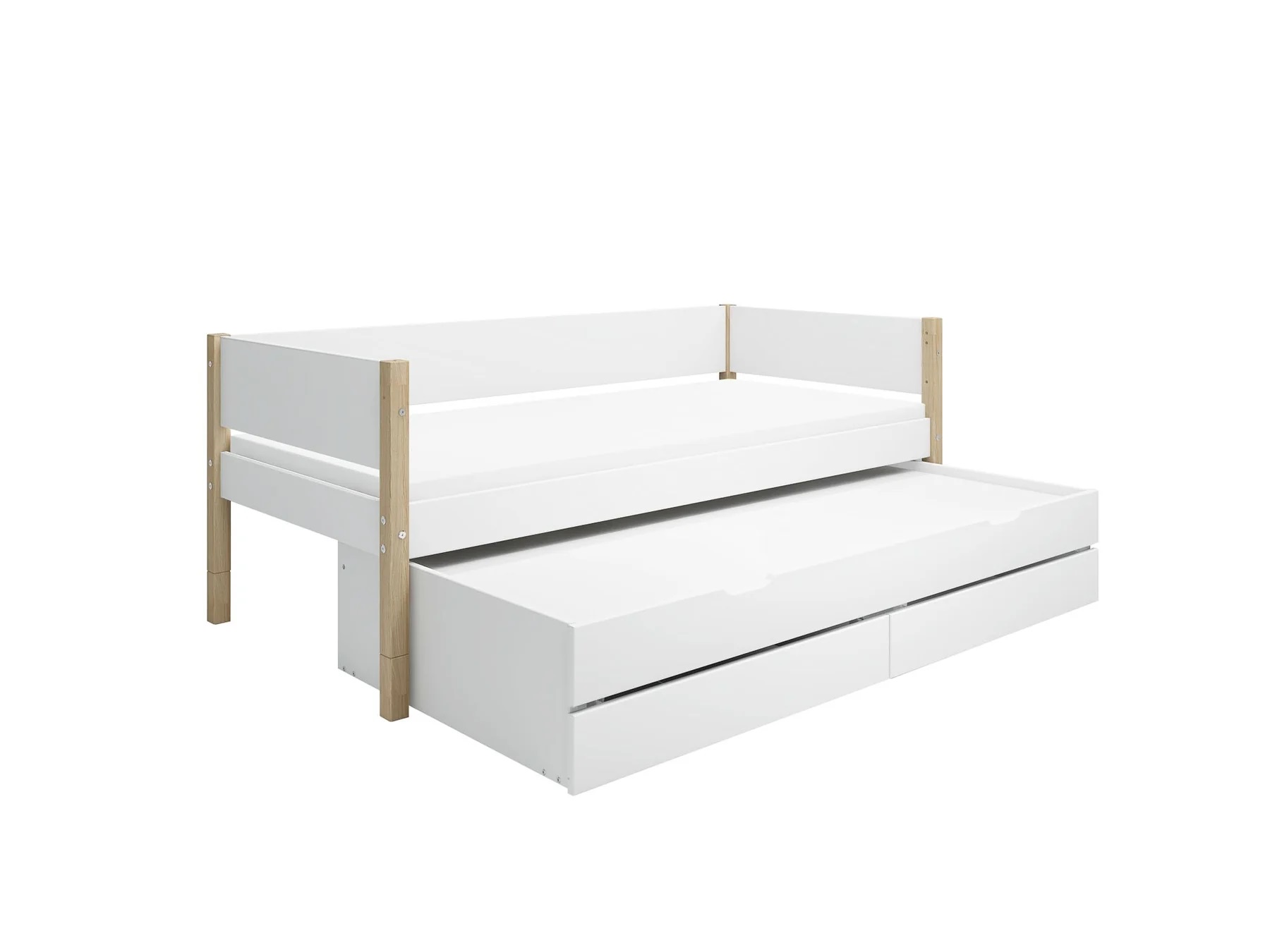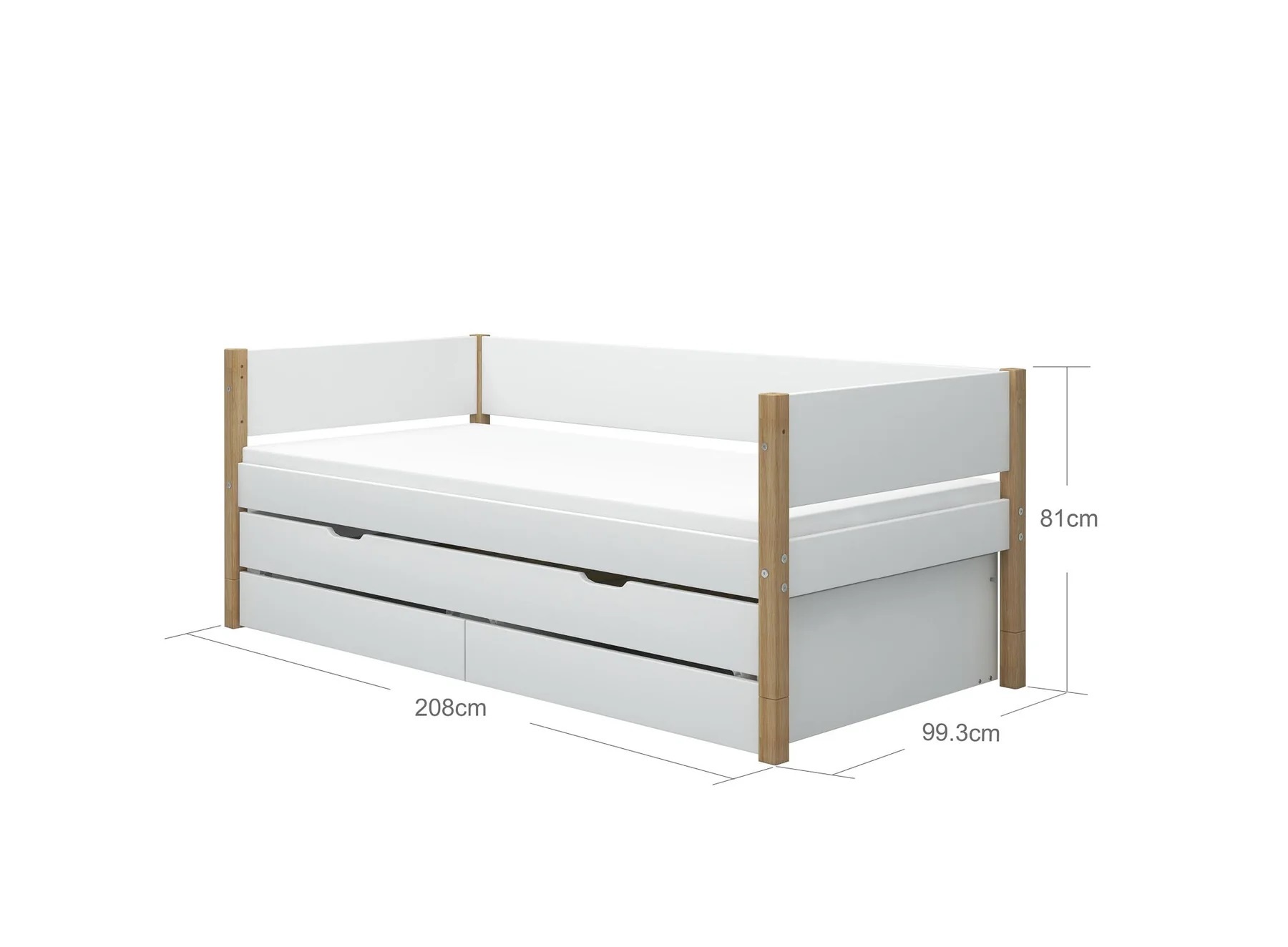 Flexa, barnsäng med förvaring och extra säng 90×200 cm Nor, vit/ek
