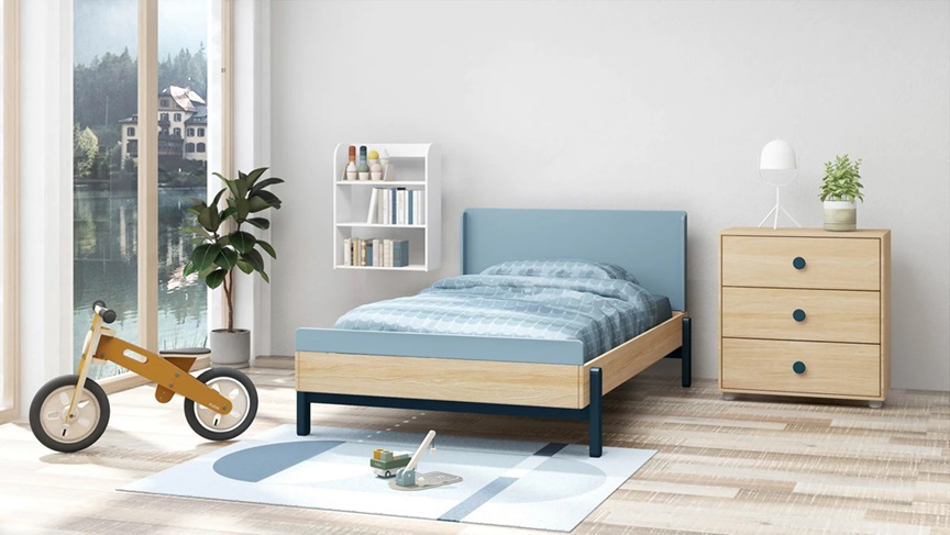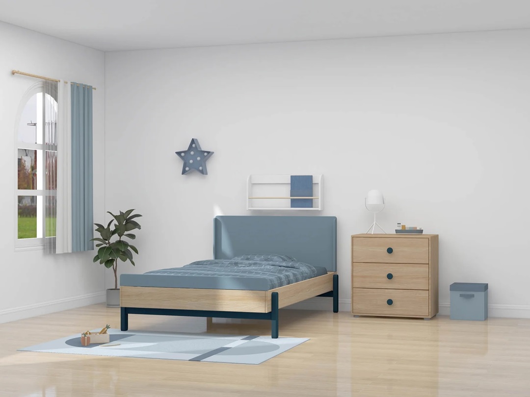 Spana in denna underbara juniorsäng med hög gavel designad av Herman Studio med modern retrolook!