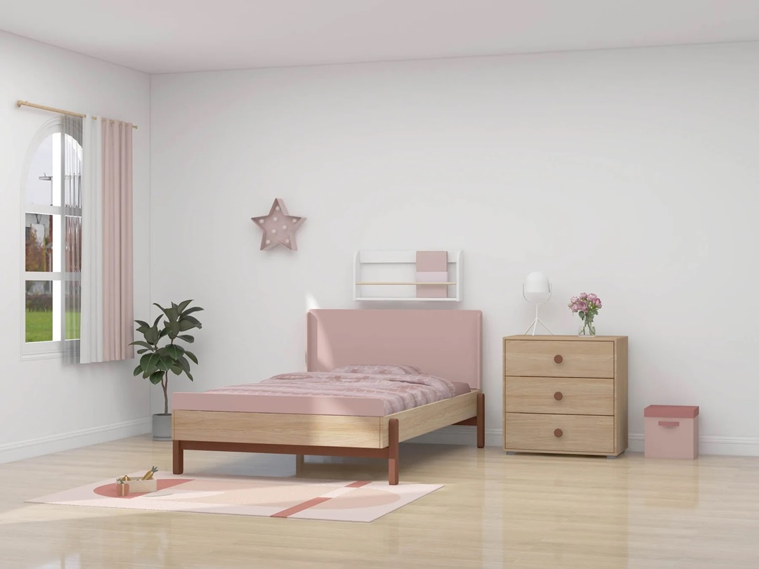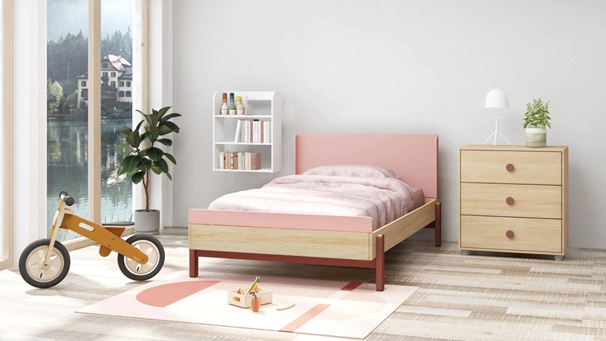 Spana in denna underbara juniorsäng med hög gavel designad av Herman Studio med modern retrolook!