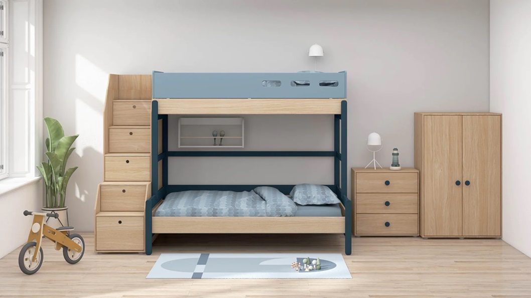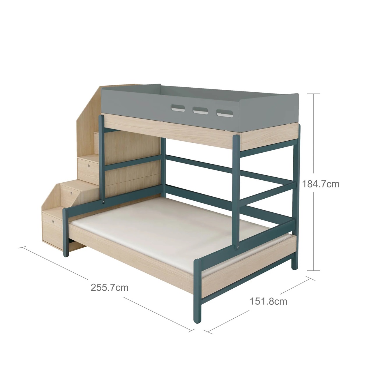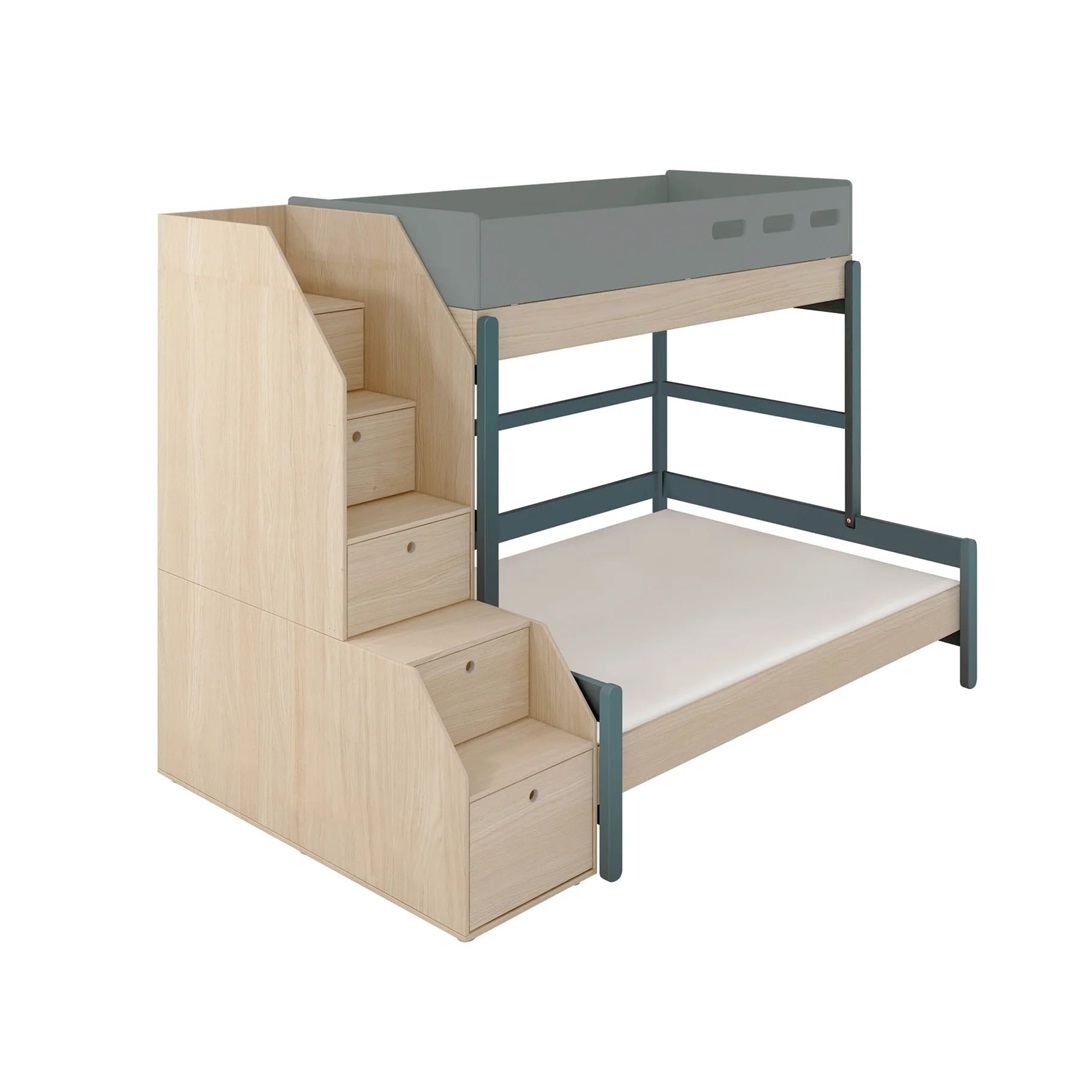 Flexa, familjesäng trappa Popsicle 90×200/140×200, blueberry oak