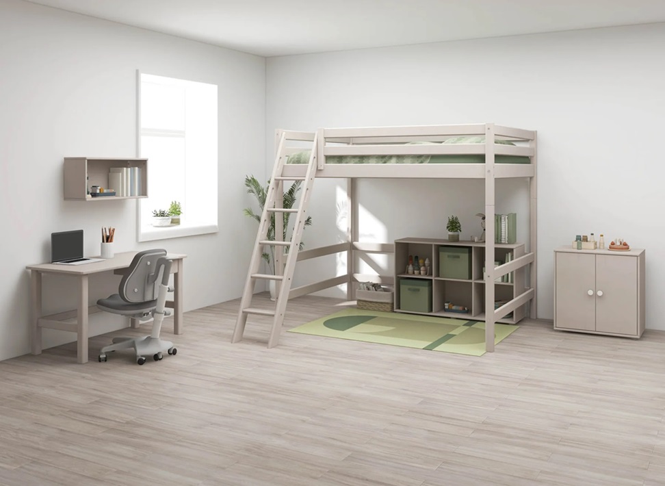 Flexa, hög loftsäng 140×200 cm Classic, grå