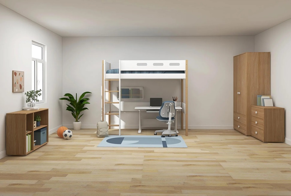 En loftsäng frigör mycket golvyta, och passar perfekt om man har ett lite mindre rum.